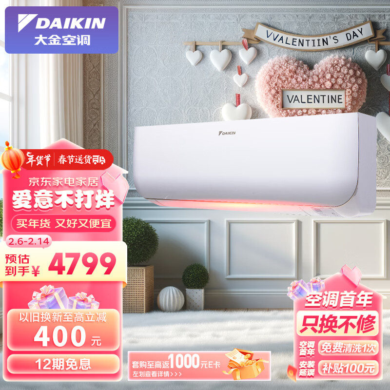 大金空调 10-17㎡适用 新二级能效 大1匹 变频 冷暖 家用 壁挂式 以旧换新 FTXB226WCLW价格:4779.00元!