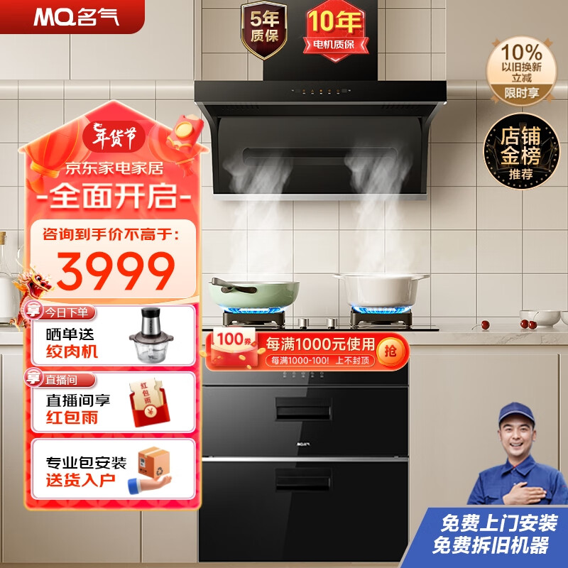 名气(MQ)老板抽油烟机7字型家用顶侧双吸变频油烟机家用24吸力燃气灶消毒柜烟灶消三套A5508+6812BT+X101A价格:3999.00元!
