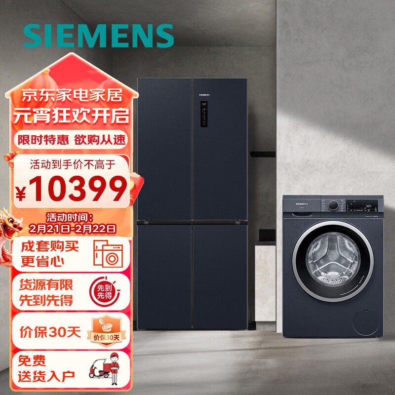 西门子(SIEMENS)KC505681EC+WN52A1X14W 497升超薄十字+10KG洗烘一体 变频冰洗套装价格:10399.00元!