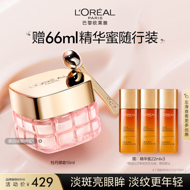 欧莱雅金致牡丹焕白眼霜15ml提拉紧致抗皱淡纹补水护肤品情人节新年礼物价格:429.00元!