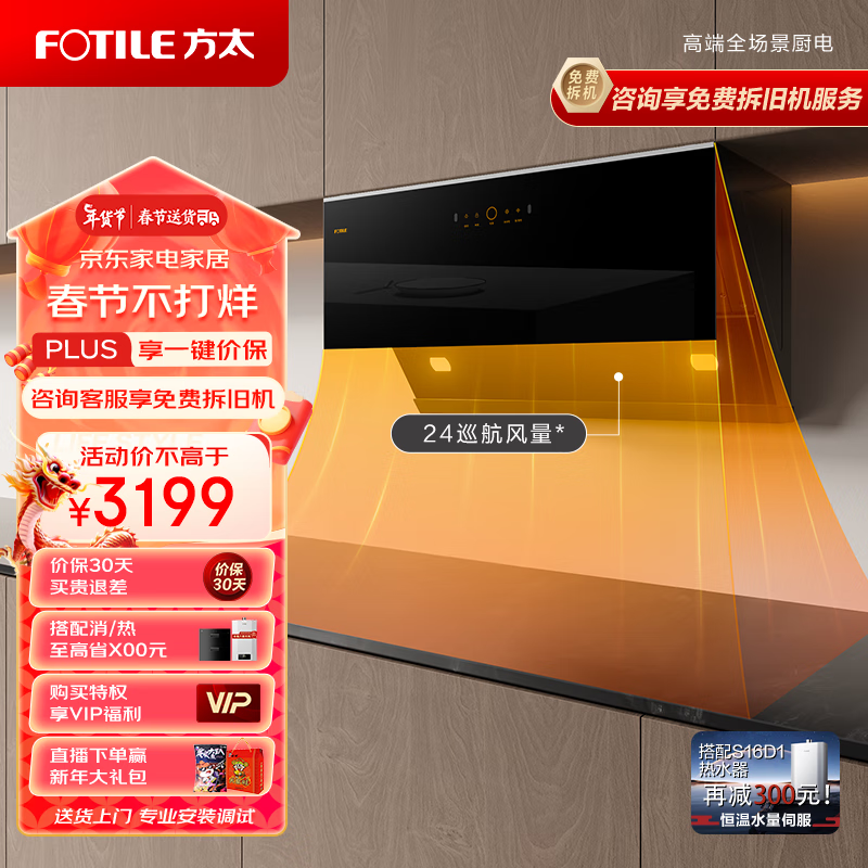 方太家用侧吸变频抽油烟机 24m3/min大吸力 挥手智控 智能巡航增压 单烟机JCD16T价格:3199.00元!