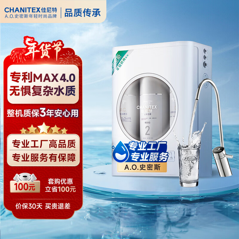 史密斯(A.O.SMITH)佳尼特净水器家用厨下式直饮净水机专利4年RO膜反渗透滤芯1.6升/分钟大眼萌CXR600-A1 以旧换新价格:2299.00元!