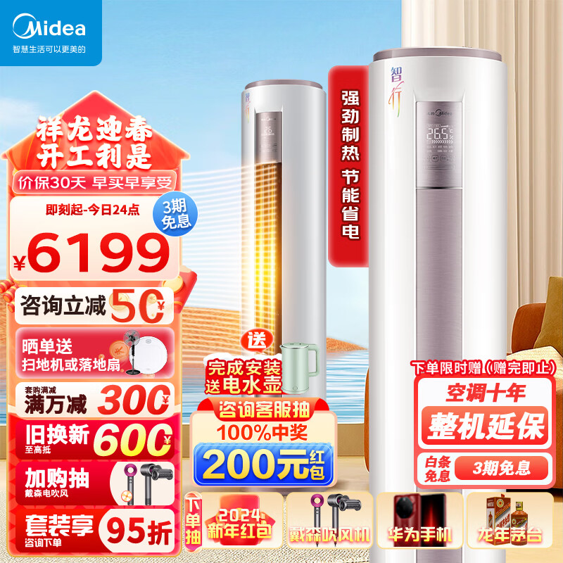 美的(Midea)智行三代一级能效3匹空调变频柜机立式客厅冷暖两用制冷制热大出风口空调家电以旧换新YH200价格:6199.00元!
