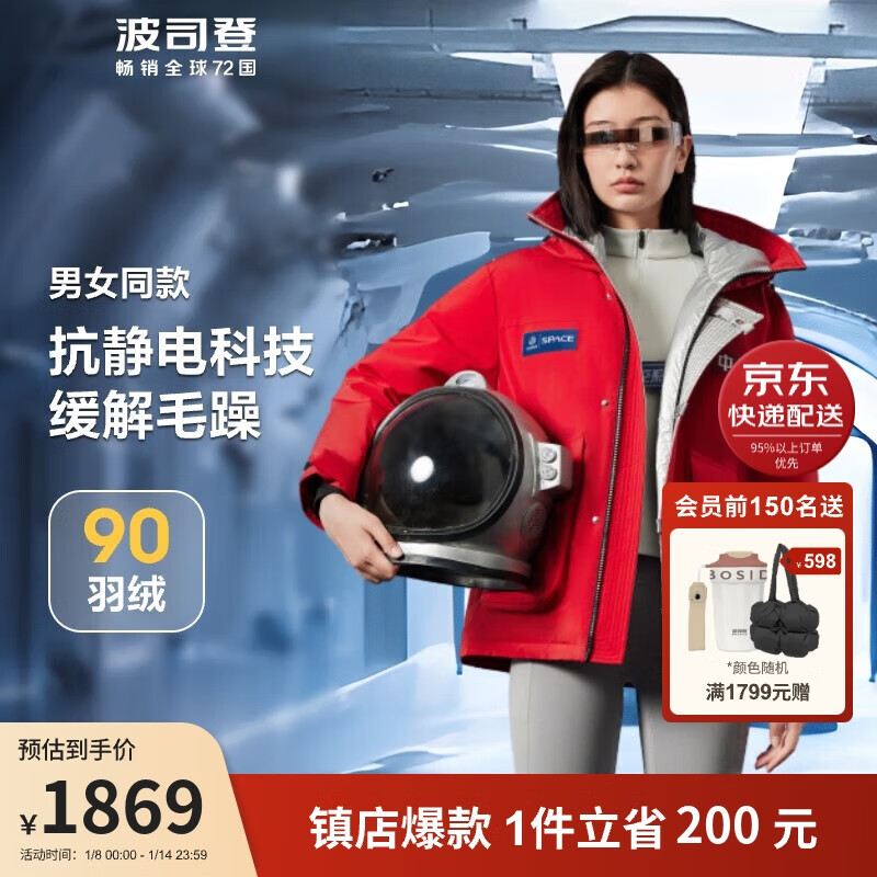 波司登2023谷爱凌同款羽绒服男女情侣时尚宽松新年红加厚外套B30143620价格:2069.00元!
