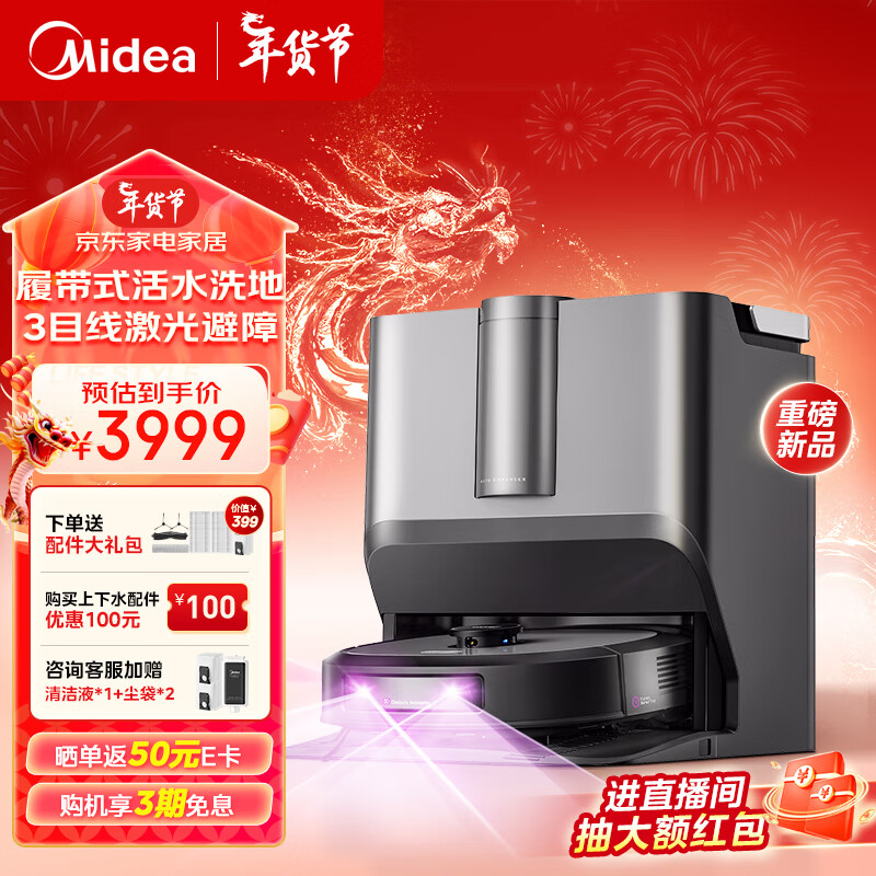 美的(Midea)扫地机器人扫拖一体 灵眸W20洗地机器人 履带式活水洗地自动集尘扫拖洗烘一体机洗地机拖地机价格:3998.00元!