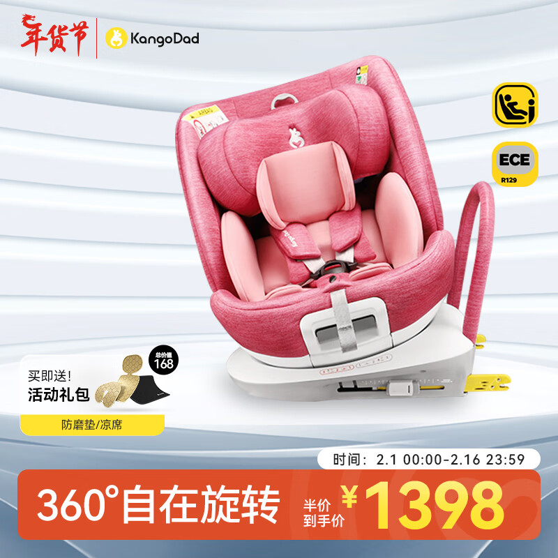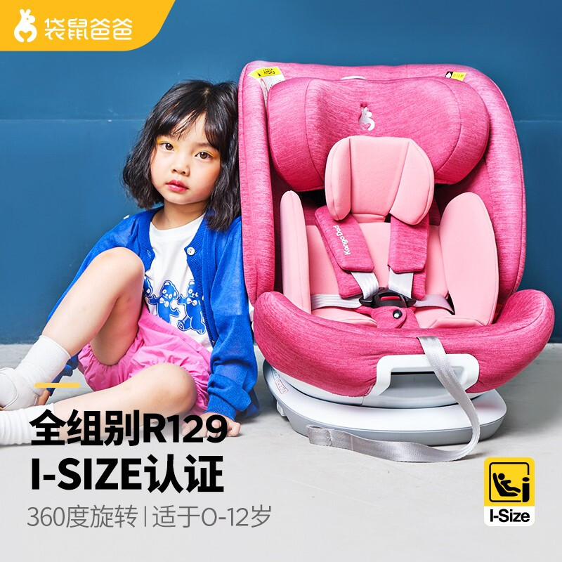 袋鼠爸爸 0-12岁全龄I-SIZE认证360度旋转90度悬停座椅 星途软萌粉价格:1398.00元!