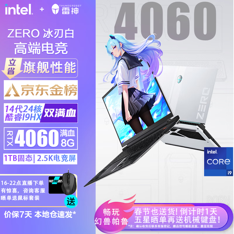 雷神(ThundeRobot) ZERO2024银翼灰/橙独显轻薄全能骨灰玩家级电竞游戏本AI设计师建模移动工作站911旗舰笔记本电脑 14代酷睿i9HX|4060|16G1T冰刃白价格:10599.00元!