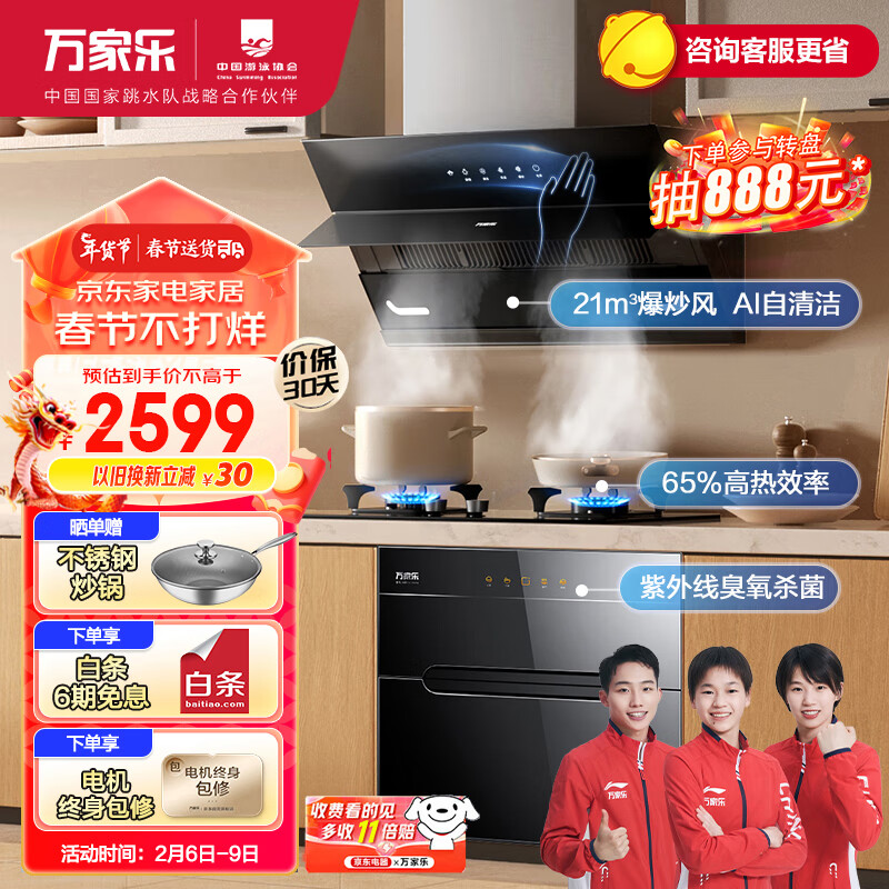 万家乐 抽油烟机侧吸自清洗21m3/min挥手智控5.0kW燃气灶110L消毒柜烟灶消三件套AJ4+KV061B+DQ052天然气价格:2799.00元!
