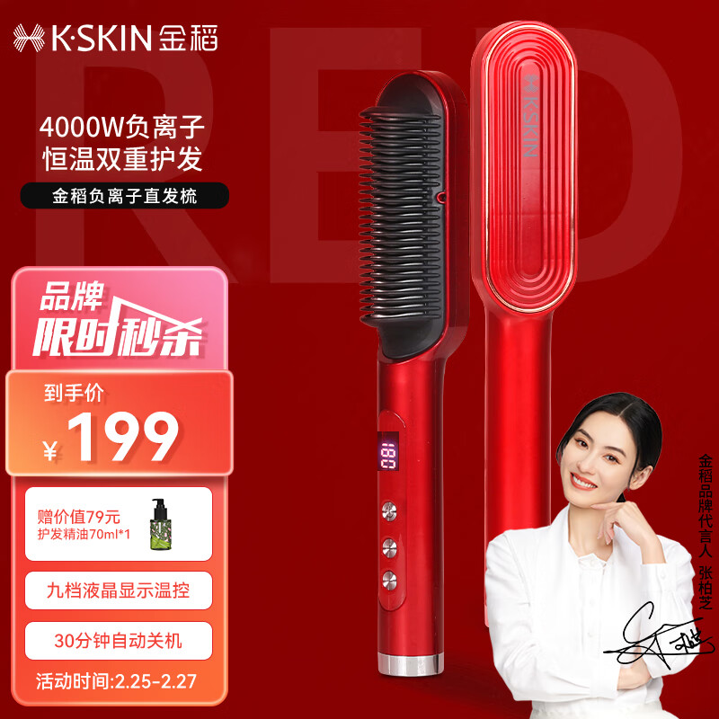 金稻直发梳负离子卷发棒内扣直板夹造型梳子4000万负离子护发30秒速热礼物女KD380K红色 38节礼物女价格:259.00元!