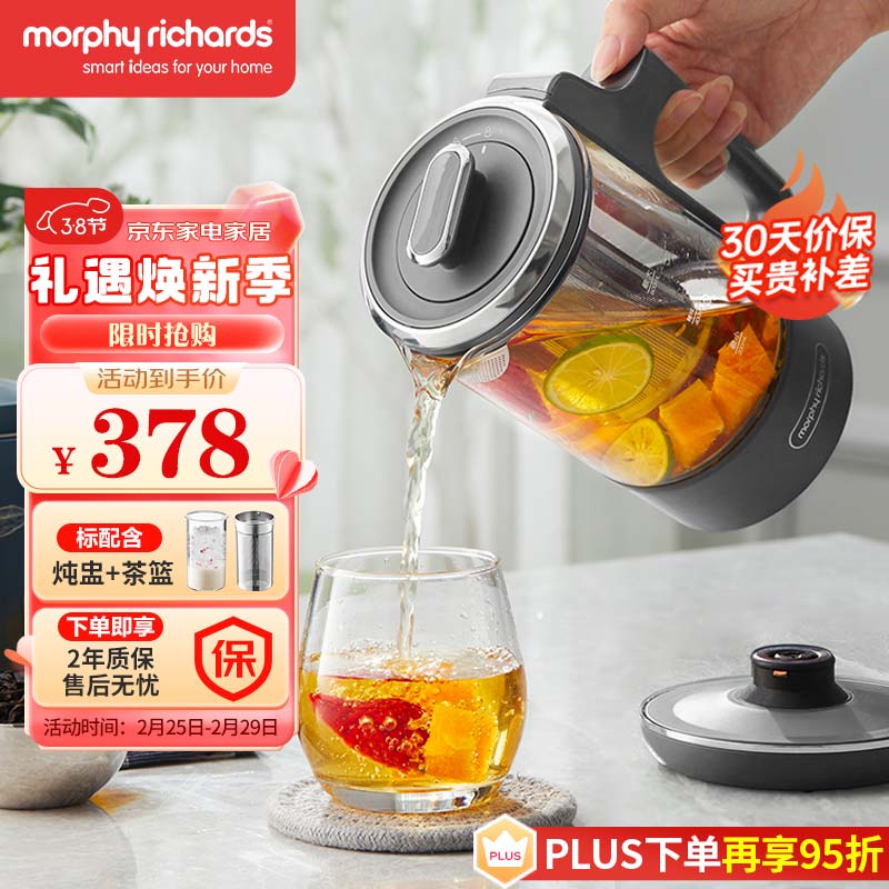 摩飞电器(Morphyrichards)养生壶 分体便携式迷你煮茶器 烧水壶 小型办公室家用 多功能煮茶壶分体式热水壶0.6L MR6085 灰价格:378.00元!