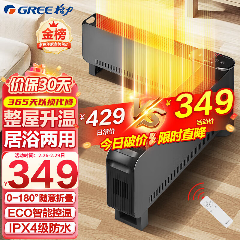 格力(GREE)折叠踢脚线取暖器家用大面积电暖器遥控电暖气片IPX4级防水移动地暖浴室干衣暖风机 【金榜单品】1.2米折叠踢脚线NJE-X6020B价格:348.00元!