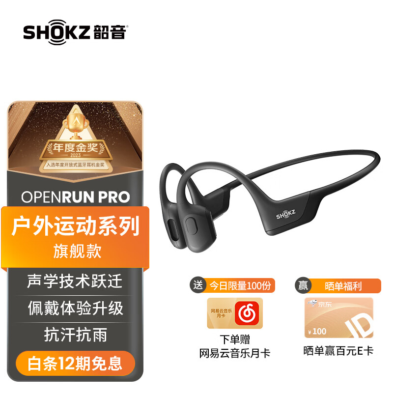 韶音(SHOKZ)OpenRun Pro骨传导蓝牙无线开放式耳机耳麦 不入耳式运动高音质 低频增强S810 骑士黑价格:1298.00元!