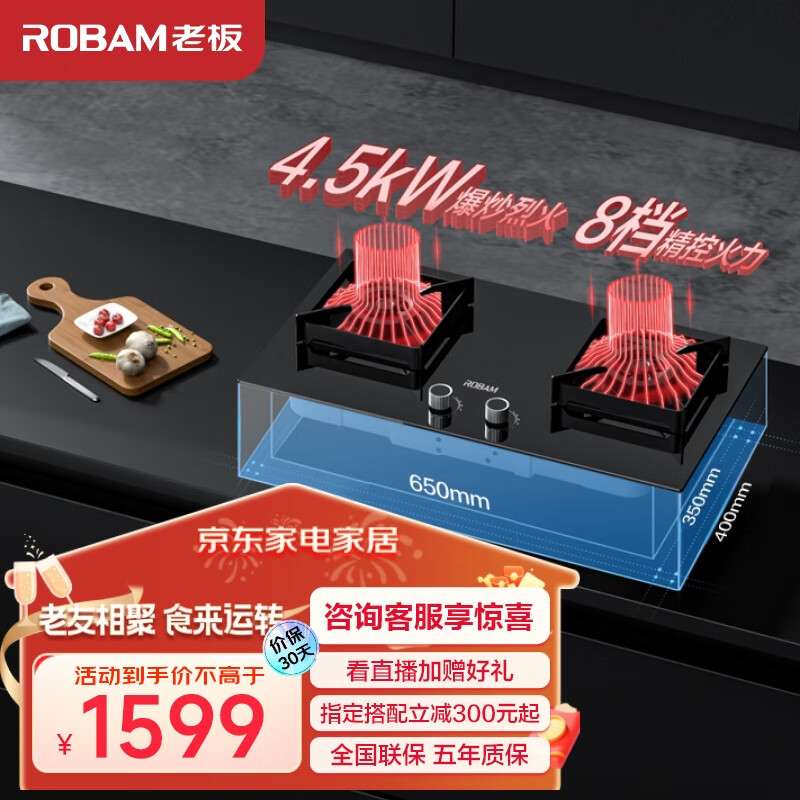 老板(Robam)控火大师JZY-37B6A燃气灶液化气灶双灶 4.5kW嵌入式可调节灶具灶台钢化玻璃猛火家用以旧换新价格:1599.00元!