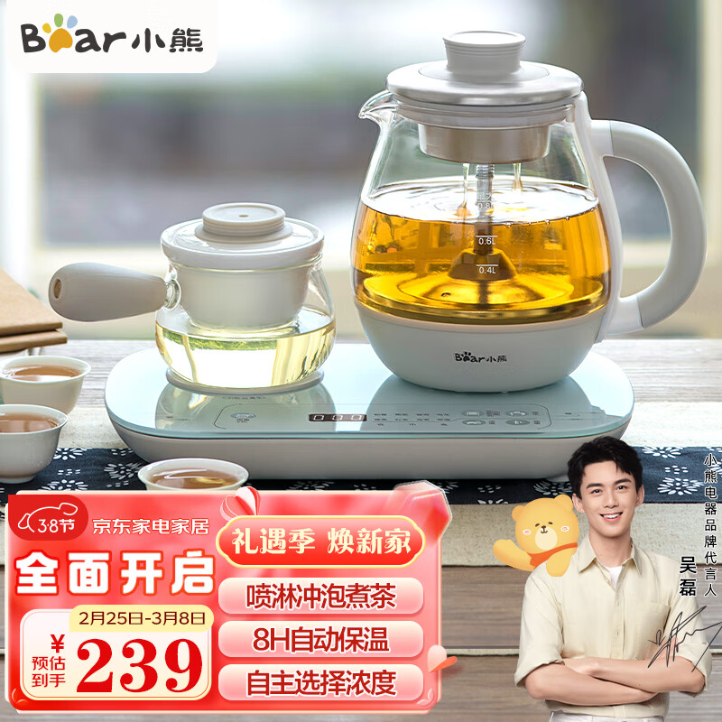 小熊(Bear)煮茶器煮茶壶 0.8L蒸汽喷淋式蒸茶壶养生壶电水壶热水壶304不锈钢烧水壶茶具黑茶ZCQ-A08E1价格:239.00元!
