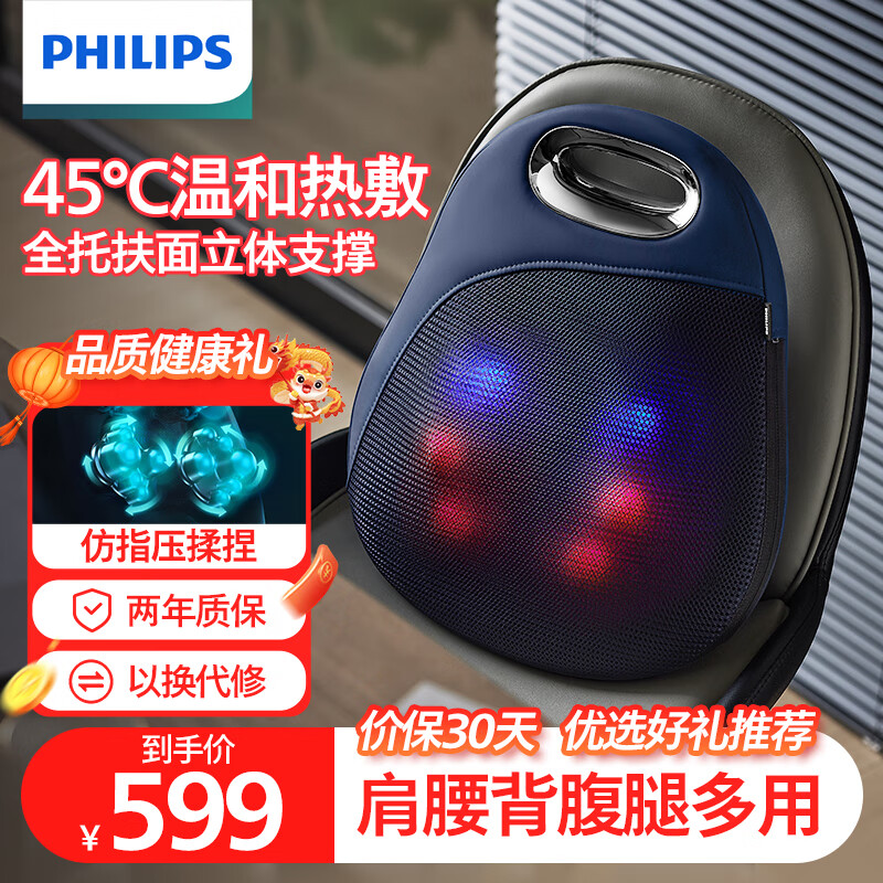 飞利浦(PHILIPS)腰背部按摩器多功能腰椎按摩仪捶打揉捏热敷便携办公按摩垫靠垫靠枕送礼礼品高端礼物5111B价格:599.00元!