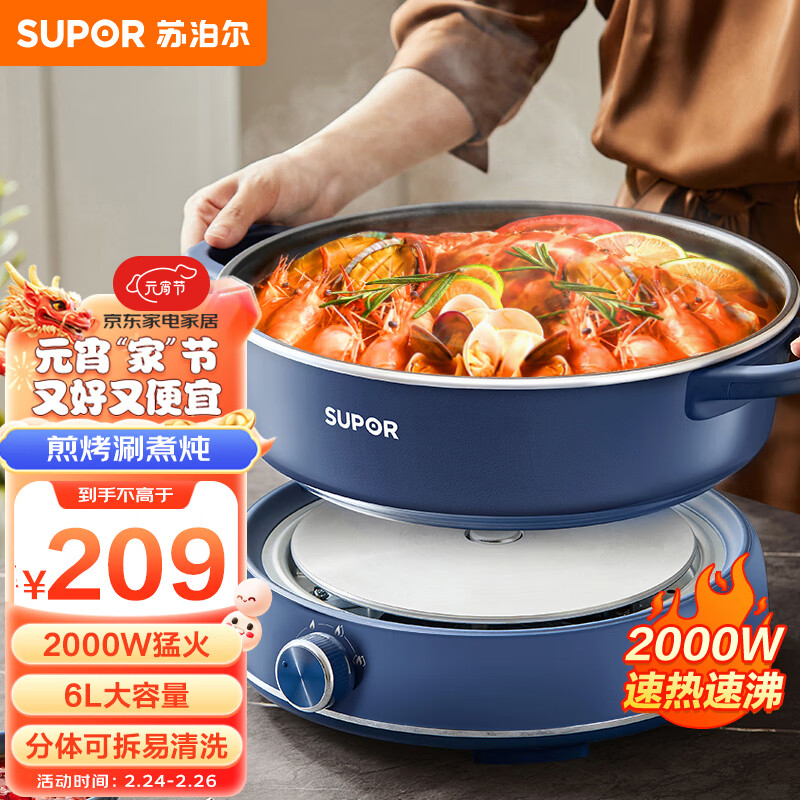 苏泊尔电火锅 电煮锅火锅专用锅 多功能火锅锅 分体式家用电热锅电炒锅 6L大火力多用途锅H30YK856价格:209.00元!