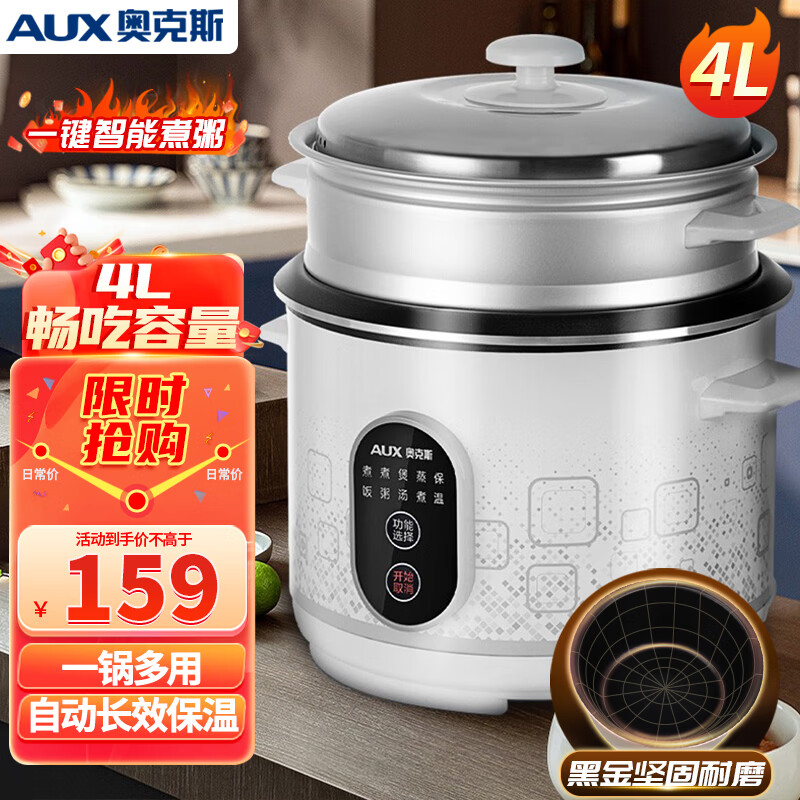 奥克斯(AUX)电饭煲4L电饭锅 直身式带蒸笼 操作简单 家用智能款煮粥电饭锅VK-401ZF6价格:159.00元!