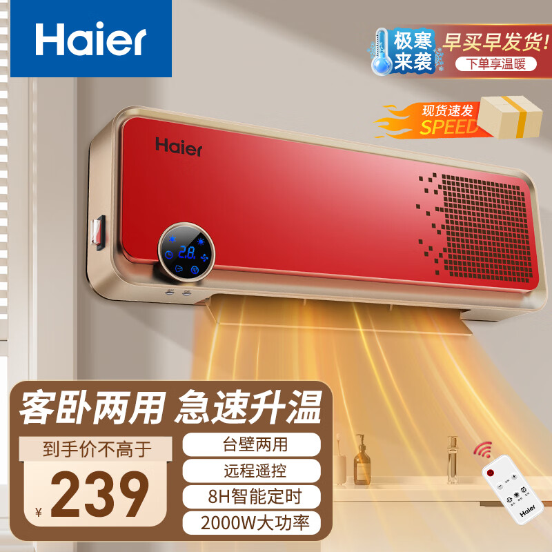 海尔(Haier)取暖器家用浴室防水壁挂电暖气节能电热风机冷暖电暖器速热烤火炉遥控暖风机 台壁两用HNS2005价格:219.00元!