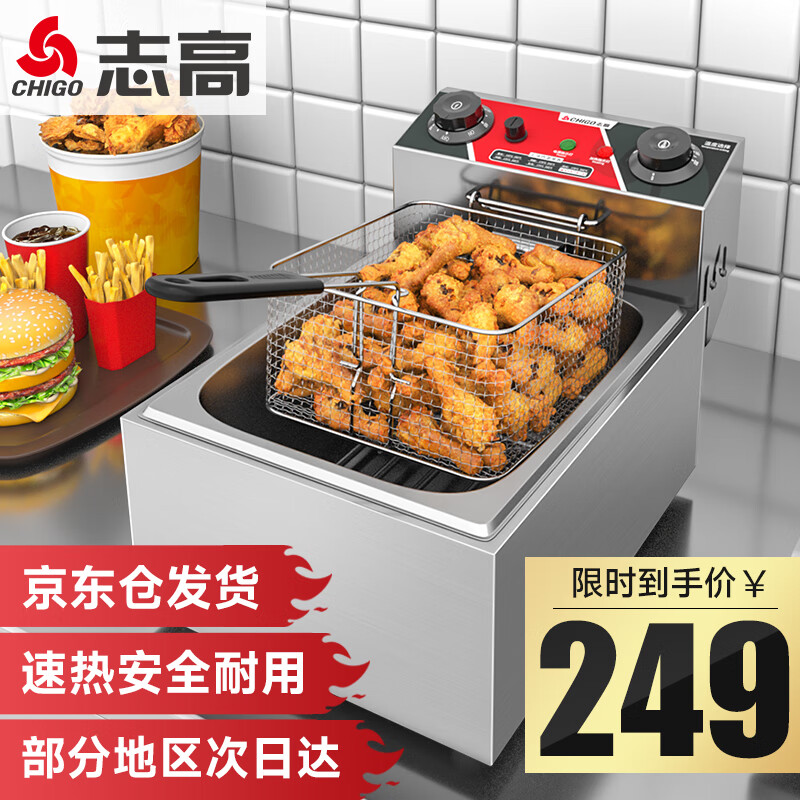 志高(CHIGO)电炸炉商用定时小吃油炸锅油炸机油条机薯条机家用电炸锅油炸炉炸串机企业采购 ZG-ASQ-81A单缸价格:249.00元!
