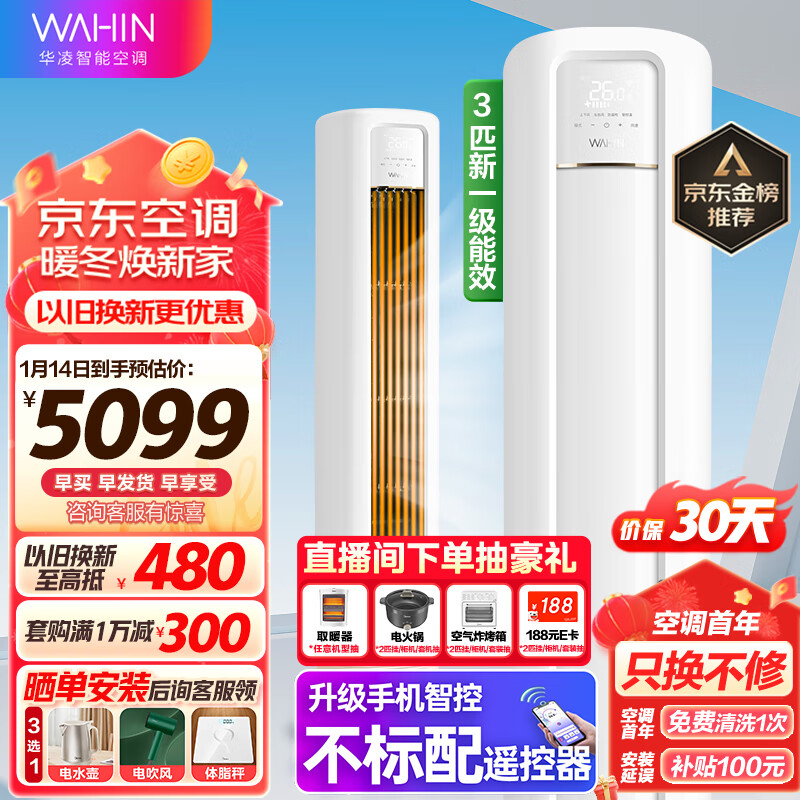 华凌空调 新一级能效 空调立式 高温蒸汽自洁 3匹 客厅柜式空调柜机 京东小家KFR-72LW/N8HB1A以旧换新价格:4999.00元!