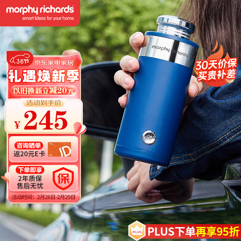 摩飞电器(Morphyrichards)取暖器便携式保温杯暖手宝 圣诞生日送礼物送女友女生送老师迷你usb充电时尚水杯 MR6000轻奢蓝价格:245.00元!