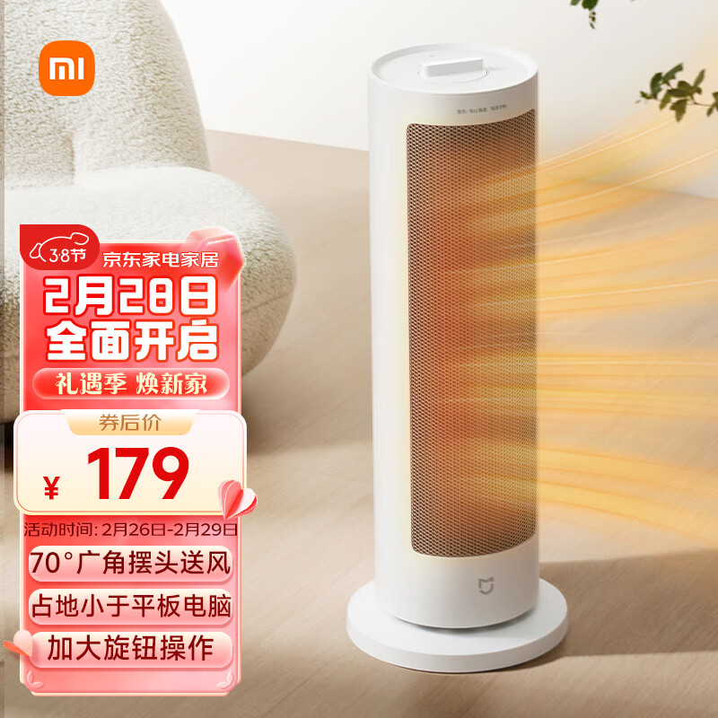 米家小米暖风机 取暖器 家用暖风机立式 速热摇头电暖风恒温电暖器 立体制热卧室烘干衣物价格:189.00元!
