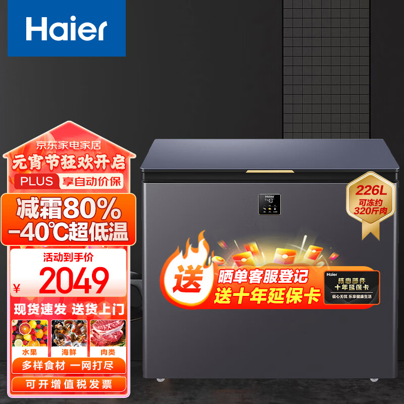 海尔(Haier)冰柜226升家用商用冷柜迷你小冷柜小型冷冻柜一级能效节能速冻小冰箱 BC/BD-226GHEPG[家电]价格:2149.00元!
