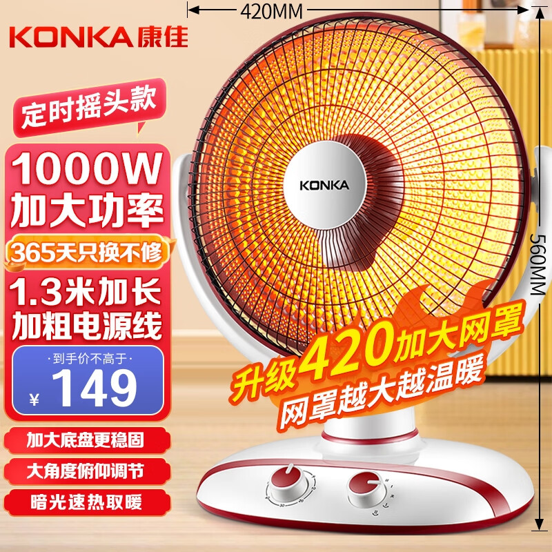 康佳(KONKA)取暖器家用小太阳电暖器速热电暖气台式可摇头电热取暖烤火炉暗光速热KH-TY81价格:149.00元!