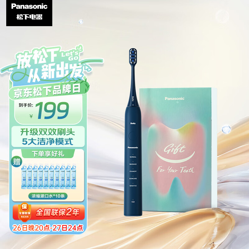 松下(Panasonic)电动牙刷小彩刷 软毛成人磁悬浮声波震动清洁 情侣款电动牙刷 生日礼物送男友送女友DC02蓝色价格:199.00元!