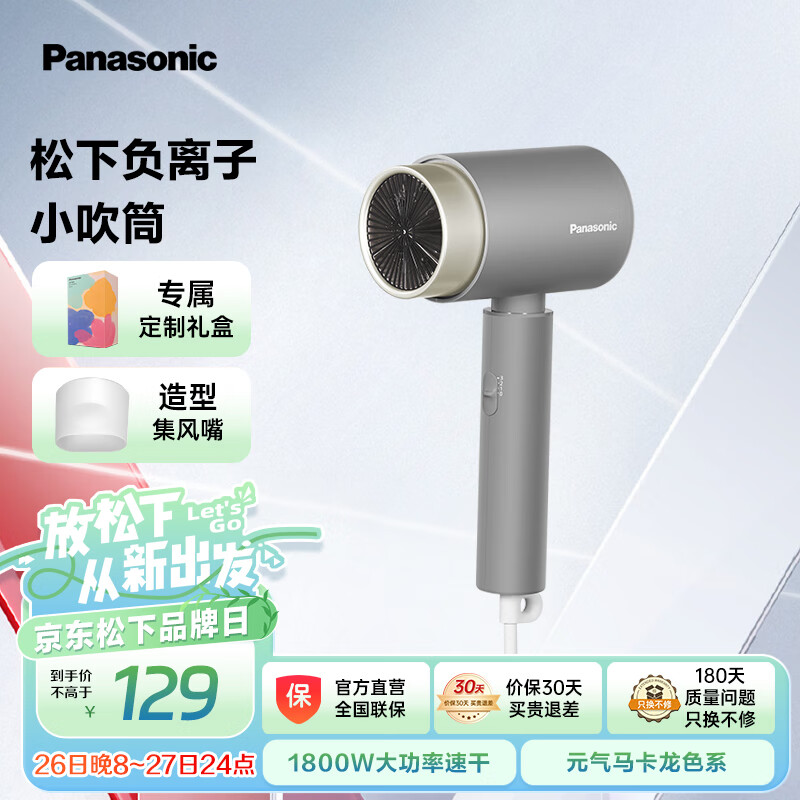 松下(Panasonic)电吹风机大功率高速大风力速干便携送学生宿舍家用负离子护发新年礼物电吹风筒EH-WNE5H礼盒款灰价格:129.00元!