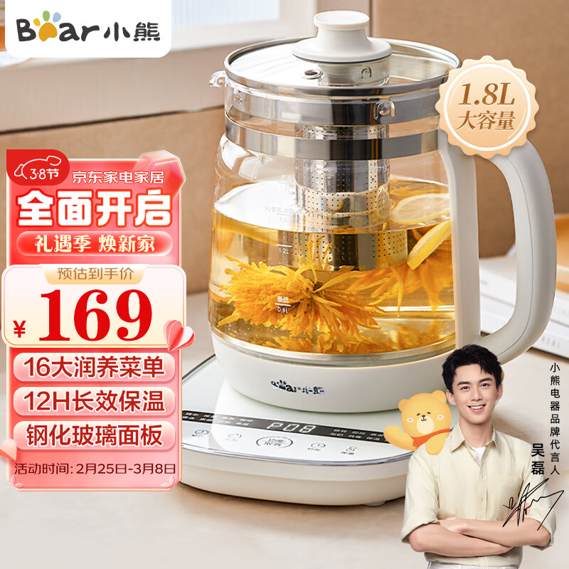 小熊(Bear)养生壶 煮茶器 煮茶壶 烧水壶电水壶热水壶电热水壶 多段保温花茶壶果茶壶1.8L YSH-D18F1带滤网价格:169.00元!