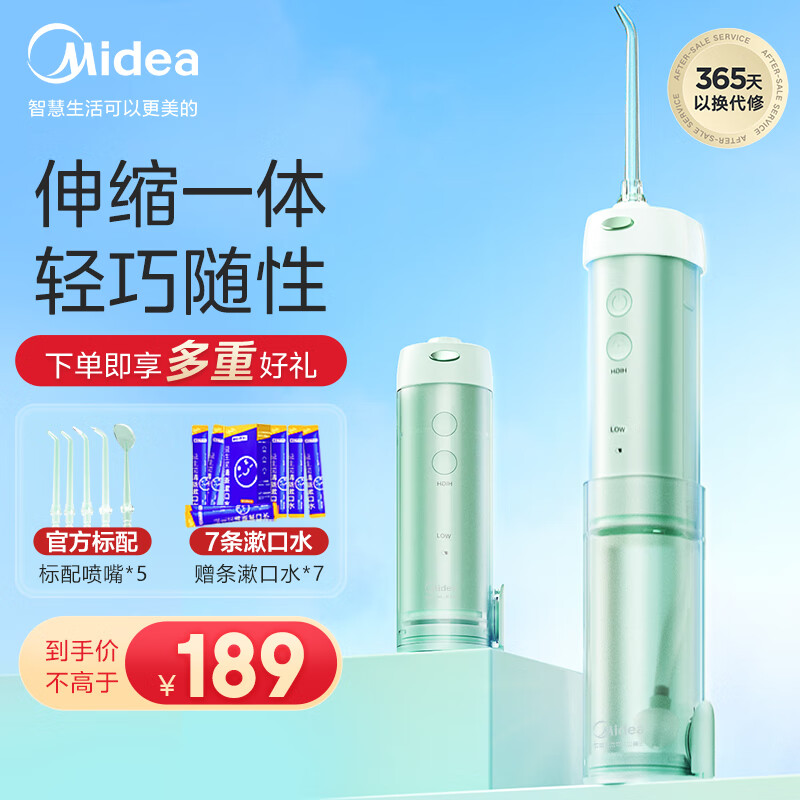 美的(Midea)冲牙器便携式 洗牙器水牙线洁牙器 电动洗牙神器 礼物送男朋友女朋友家用洁牙仪 MC-BL0102价格:189.00元!