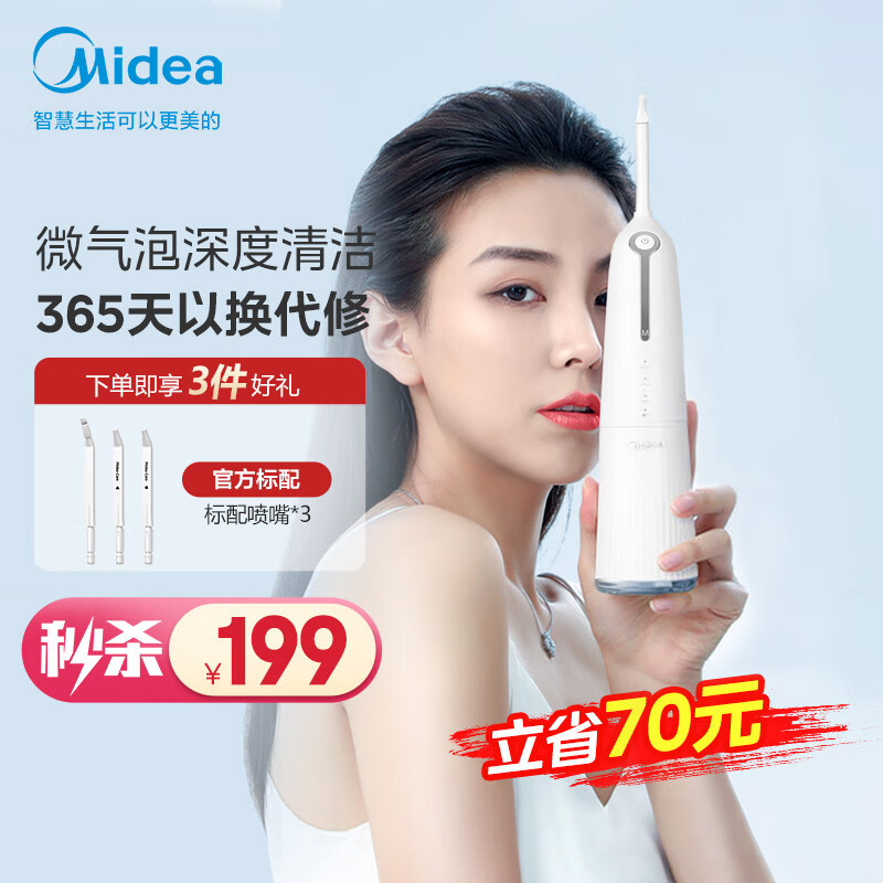 美的(Midea)冲牙器洗牙器水牙线洁牙器 家用纳米气泡智能可视洁牙仪MC-BZ0101 品质好礼 生日礼物送女友价格:269.00元!