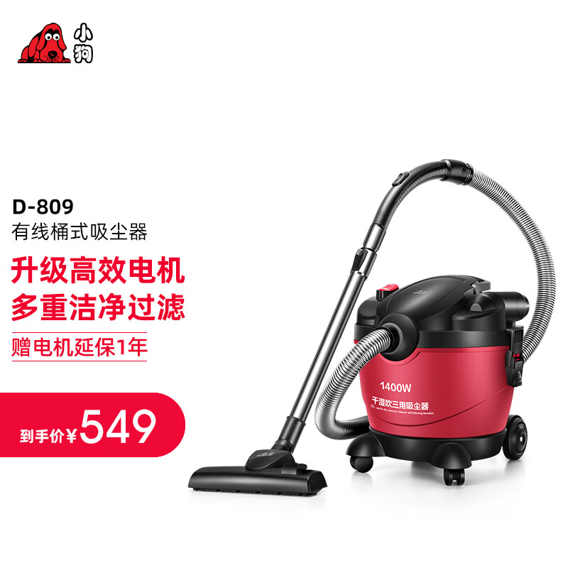 小狗(puppy)干湿吹三用大功率桶式家用吸尘器D-809价格:489.00元!
