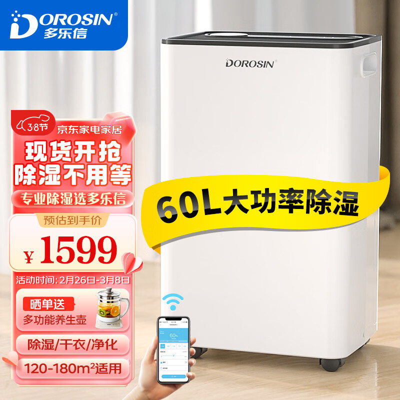 多乐信(DOROSIN)除湿机/抽湿机 除湿量60升/天 别墅 家用地下室工业除湿器 APP手机遥控 ER-60价格:1899.00元!