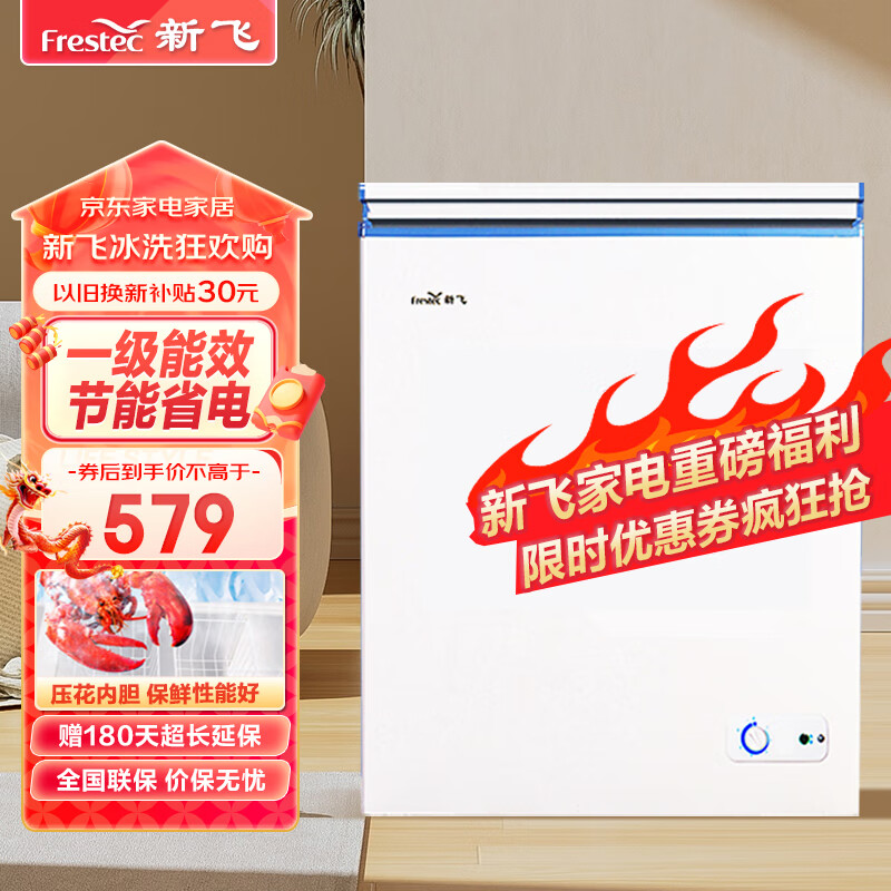 新飞(Frestec)96升冷藏冷冻转换迷你家用冰柜小冷柜一级能效立式冷柜单温小冰箱 BC/BD-96HJ1EW价格:619.00元!
