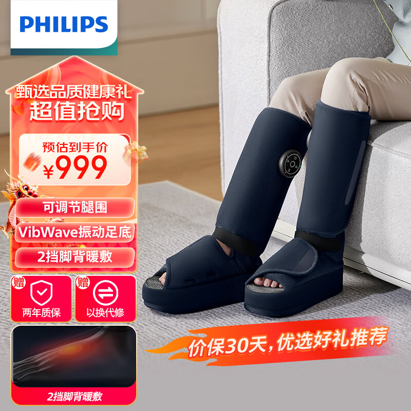 飞利浦(PHILIPS)腿部按摩器大腿小腿足底热敷震动多气囊按摩加热腿肚子家用送爸妈长辈送礼礼品高端礼物5502F价格:999.00元!