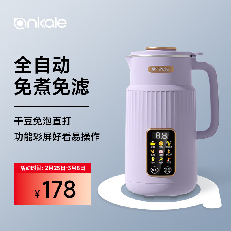 ankale破壁机 豆浆机 迷你小型家用免洗 五谷杂粮全自动免煮 破壁豆浆机 紫罗兰价格:178.00元!