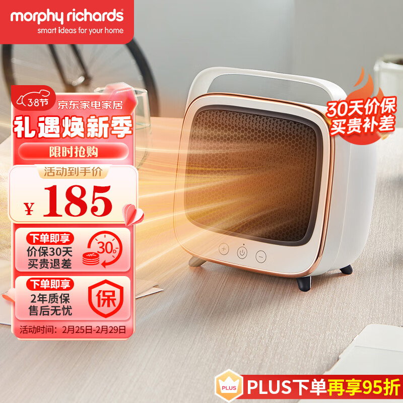摩飞电器(Morphyrichards)取暖器冷暖风机家用办公室卧室小型电暖器学生桌面迷你柔音取暖电器电暖气MR2019价格:185.00元!