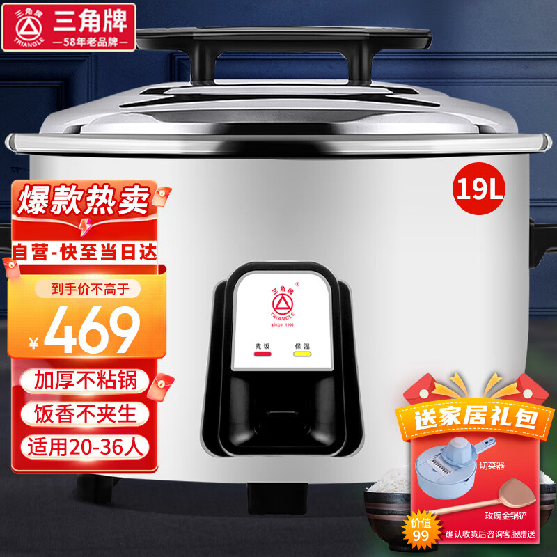 三角牌(Triangle)商用电饭煲 大容量电饭锅食堂大电饭煲酒店饭店大型超大蒸饭锅 19升 20-36人适用价格:469.00元!