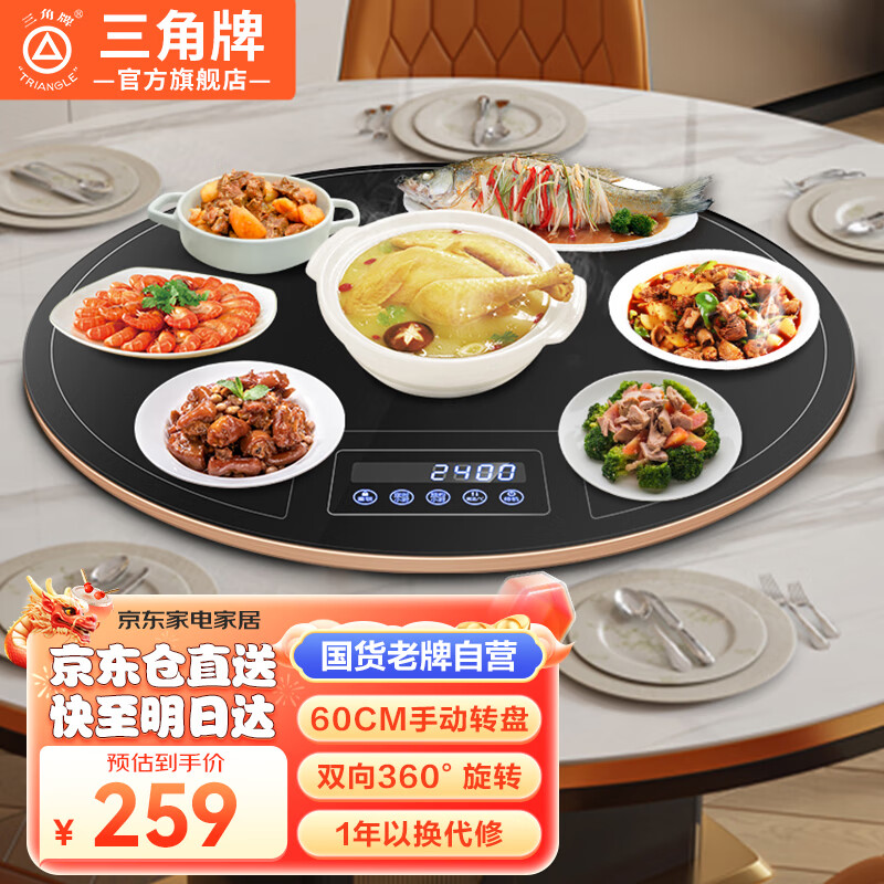 三角牌(Triangle) 暖菜板热菜板加热板饭菜保温板电磁炉多功能带火锅暖菜转盘自动旋转饭菜餐桌 手动转盘丨不带火锅加热 【60CM】价格:289.00元!