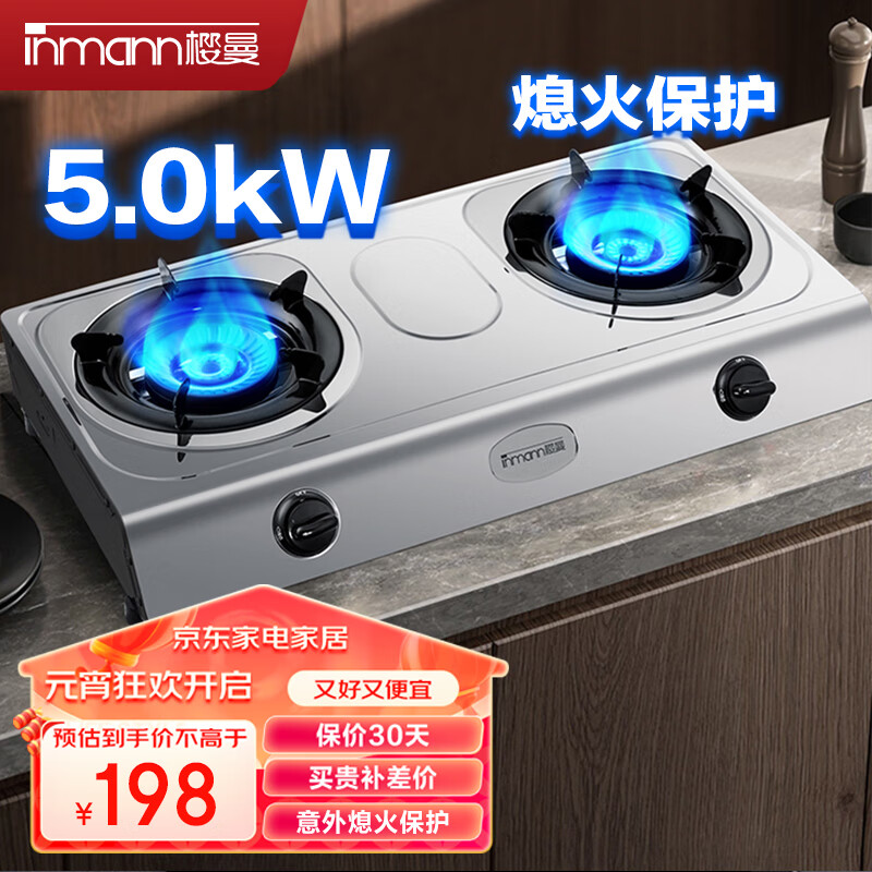 樱曼 燃气灶 煤气灶 家用台式双灶 5.0KW 大火力猛火爆炒不锈钢炉具 JZT-A248(天然气)价格:198.00元!