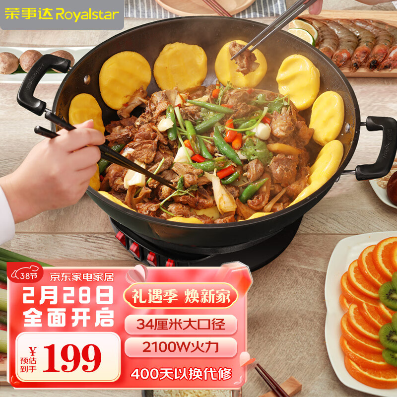 荣事达 电炒锅 家用铸铁多功能电热锅多用途锅电锅电煮锅电火锅多人电蒸锅 RDTF-34价格:199.00元!