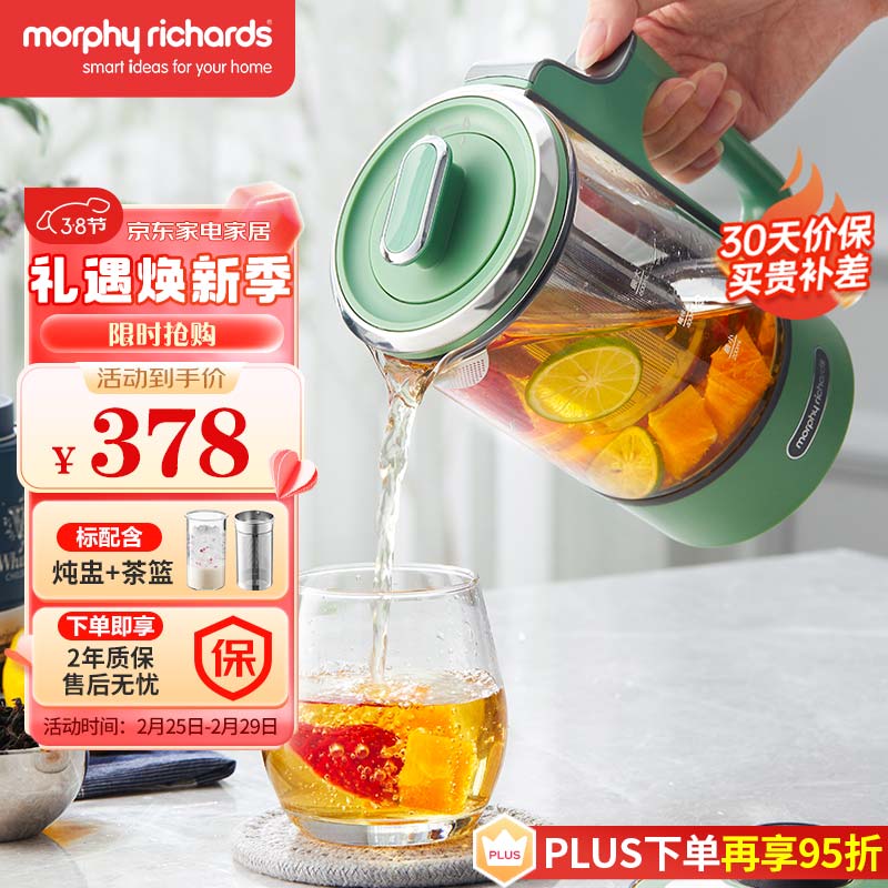 摩飞电器(Morphyrichards)养生壶 分体便携式迷你煮茶器 烧水壶 小型办公室家用 多功能煮茶壶分体式热水壶0.6L MR6085 绿价格:378.00元!
