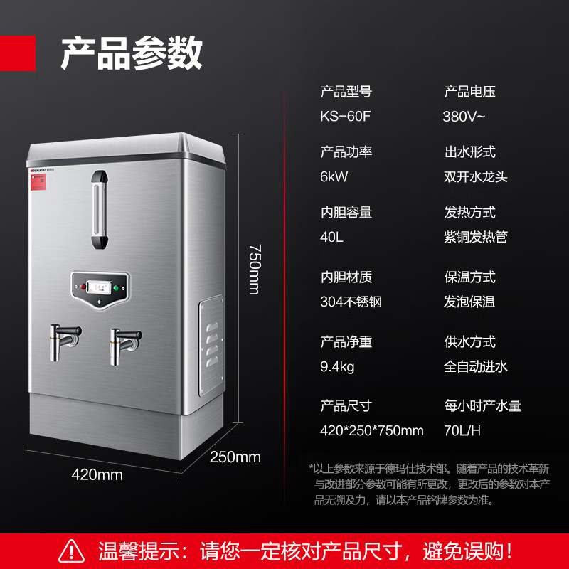 德玛仕DEMASHI 商用开水器 不锈钢商用电开水器 全自动进水开水机 304不锈钢保温烧水器 KS-60F(380V)价格:899.00元!