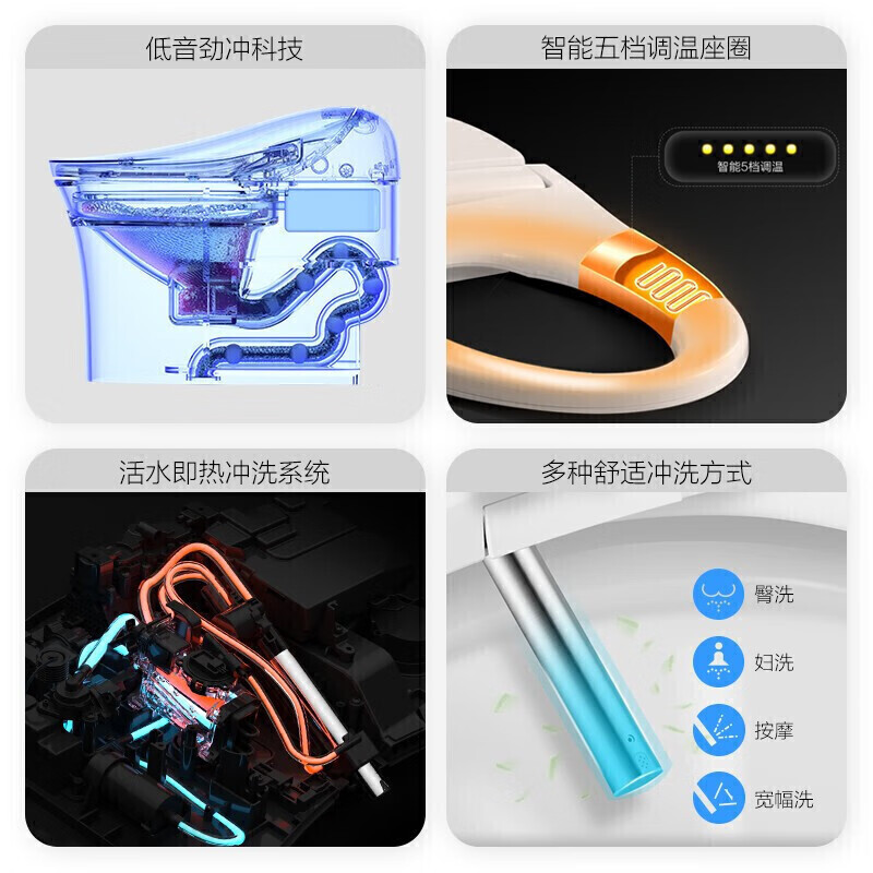 功能:暖风烘干,自动除臭,臀部清洁,座圈加热,喷嘴自洁,女性清洗,喷嘴移动清洗,净化水质,水温调节,水压调节,风温调节,坐温调节,柔和夜灯
