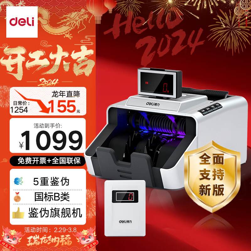 得力验钞点钞机 支持新版人民币 验钞点钞机新版 高配版商用家用专用数钱机 智能语音收银支付3919S价格:1254.00元!