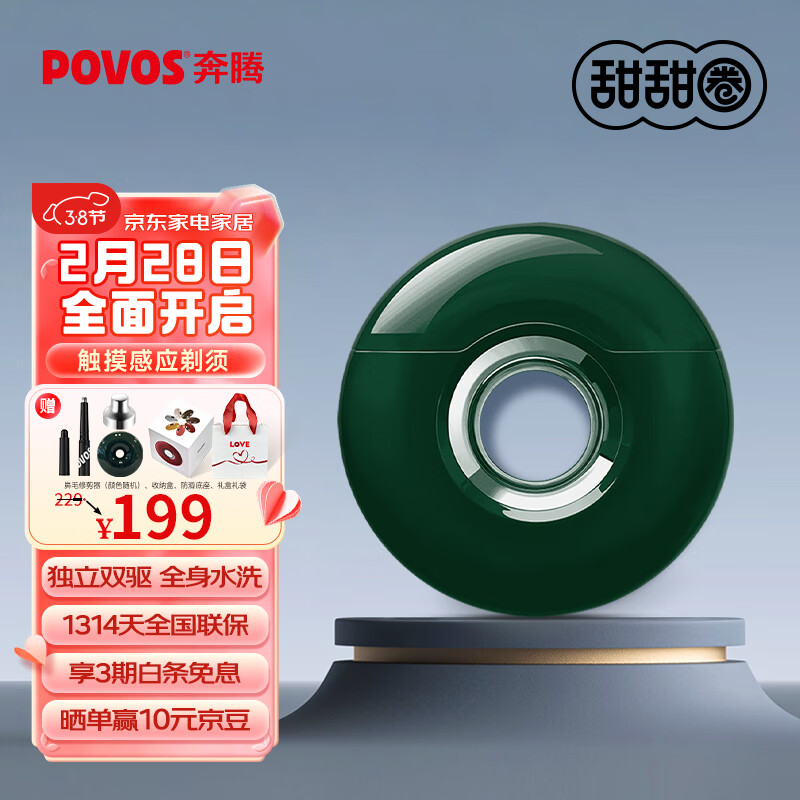 奔腾(POVOS)甜甜圈电动剃须刀 小巧便携刮胡须刀须刨智能T000长情黛 生日纪念日礼物送男友送老公送男生价格:219.00元!
