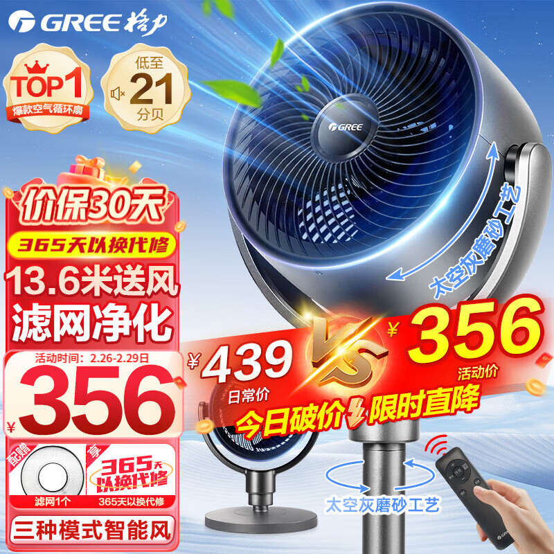 格力(GREE) 空气循环扇直流变频遥控电风扇家用摇头电扇涡轮换气扇循环对流风扇落地扇 滤网净化空气升级款FXDZ-20x62Bg3价格:356.00元!