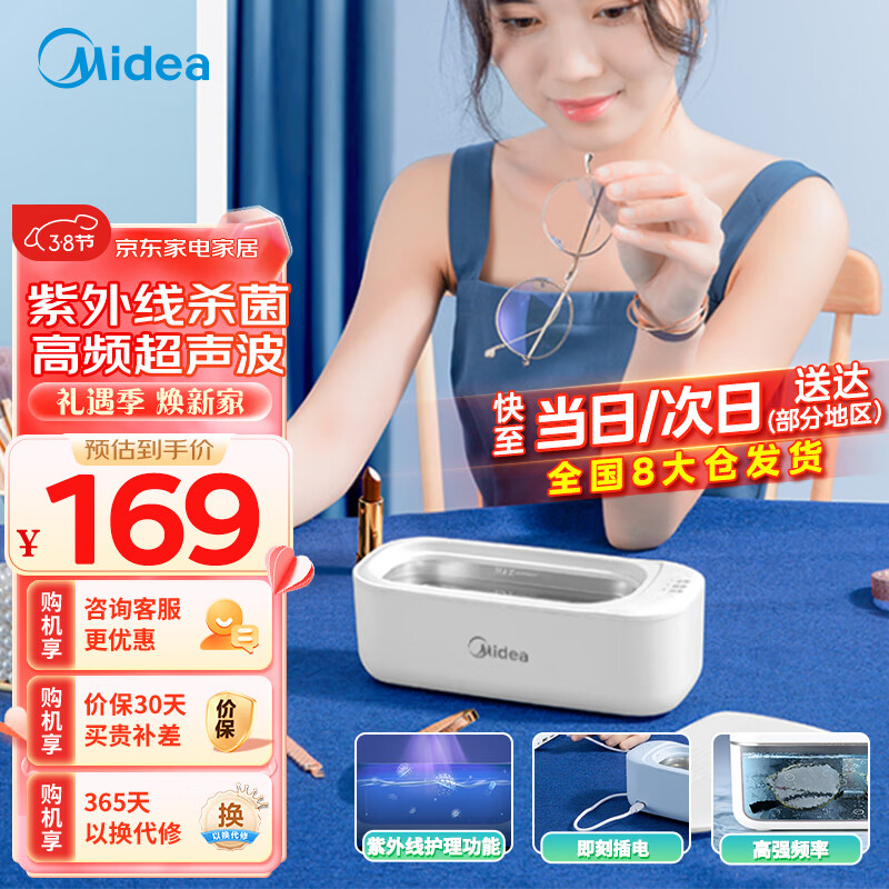 美的(Midea)超声波清洗机 眼镜清洗机 首饰剃须刀手表假牙牙套神器 UV紫外线除菌 超声波洗眼镜 MHJ45-01VW价格:169.00元!